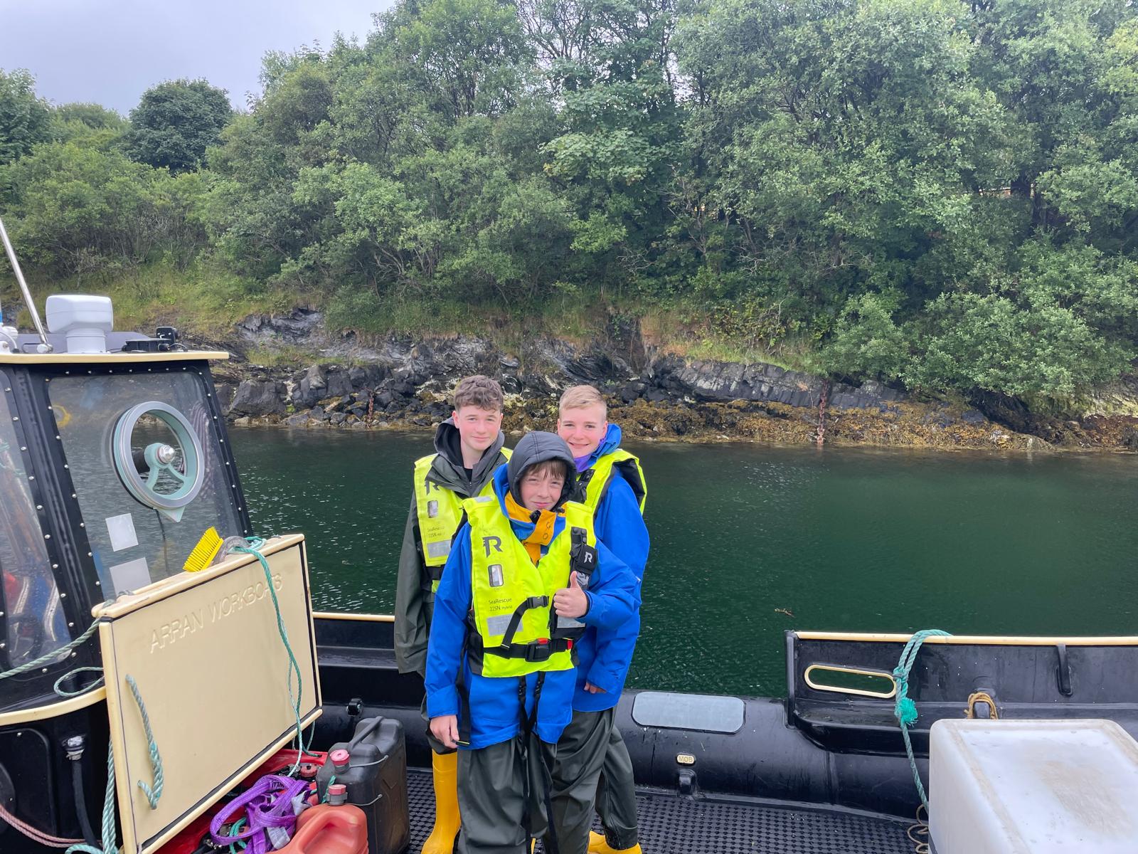 During the fourth and final session, with this brilliant group of kids, we took a trip to a Bakkafrost fish farm in Loch Striven. Here the kids got to learn about the runnings of a fish farm and the employment opportunities these big businesses have for locals. Within the tour we got to see all aspects of the fish farm – from the biologists ensuring the fish are healthy, to workers ensuring the pens are clean, using a very high tech underwater net cleaning machine! The kids were also given a talk on the wider opportunities fish farms offer their staff including travel and the other industries