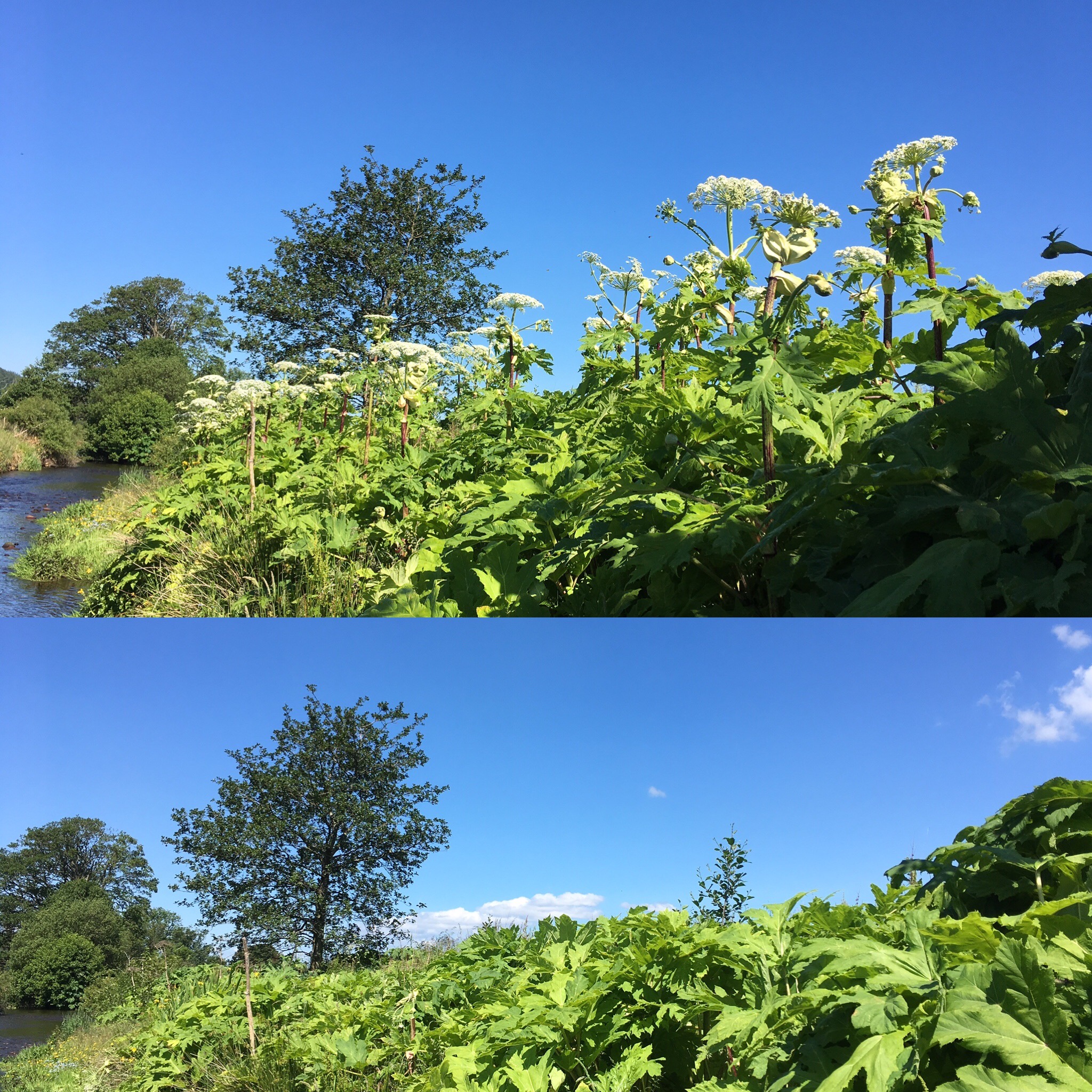 Controlling invasive non-native plant species on the Blane Water was incredibly challenging in 2021 as climatical conditions and weather patterns delayed the growth of giant hogweed. This was recognised throughout the Loch Lomond catchment in comparison to other locations in the country. Giant hogweed treatment was delayed due to the lack of plant foliage and the plant was not feasibly treatable until June. This was when all vegetation began to grow resulting in giant hogweed maturing quickly to outcompete other vegetation. This increased the difficulty to access plants and reduced the timescale to treat all known areas.